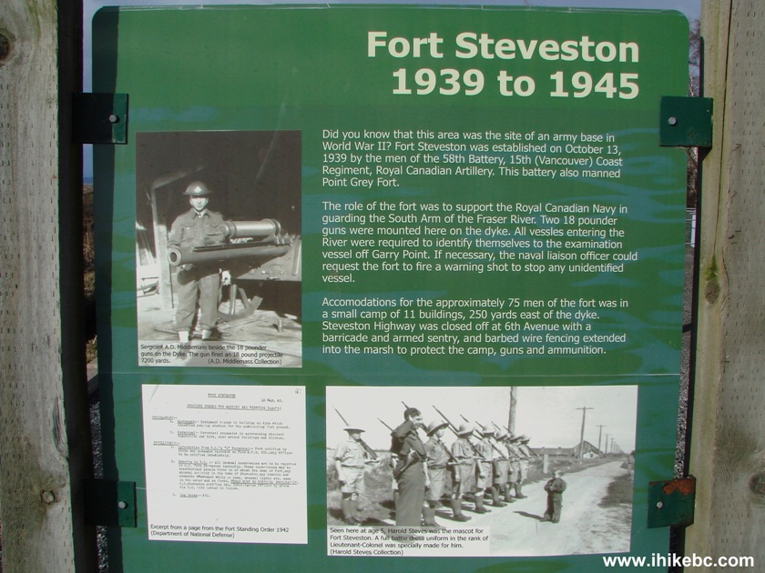 between 1939 and 1945, a Fort Steveston artillery unit was stationed in this area.