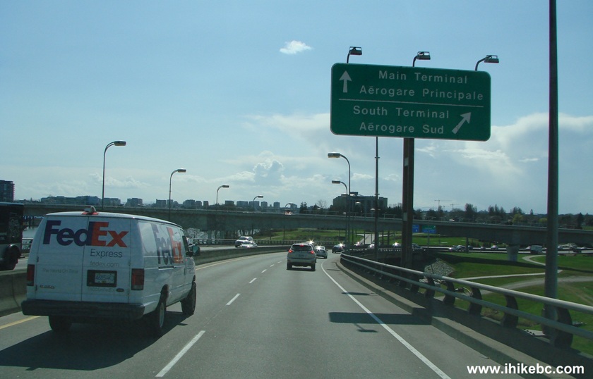 3. The first exit is to Richmond and South Terminal. Don't turn right. Keep driving straight towards the Main Terminal.