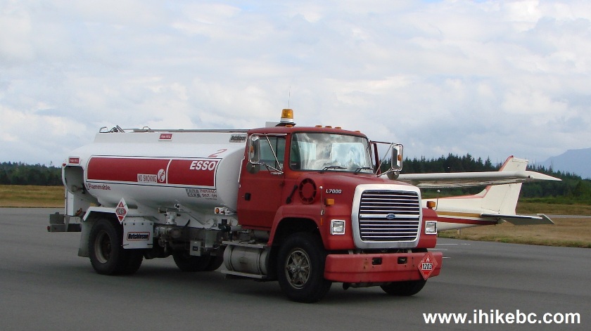27. Here is our Cessna 172 parked in Port Hardy. We burned more than half of our fuel (the tanks hold 40 gallons), so it was definitely a good idea to refuel. In the photo above you can see the service station on the left side. All you need to do is go inside, tell the serviceman what kind of fuel you need, and they dispatch a truck to your plane.