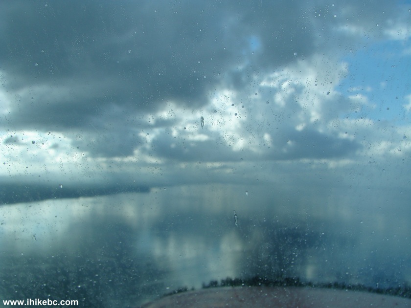 33. No doubt about it - the ceiling has dropped right to the water about fifteen minutes after we left Port Hardy. There are mountains to the right, and there is a vast empty space to the left.