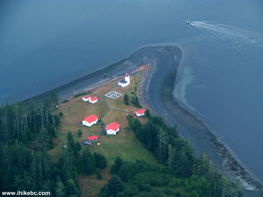 36. But, on the positive side, snapped this photo of a helipad, a lighthouse, and a few houses on the Western tip of Malcolm Island.