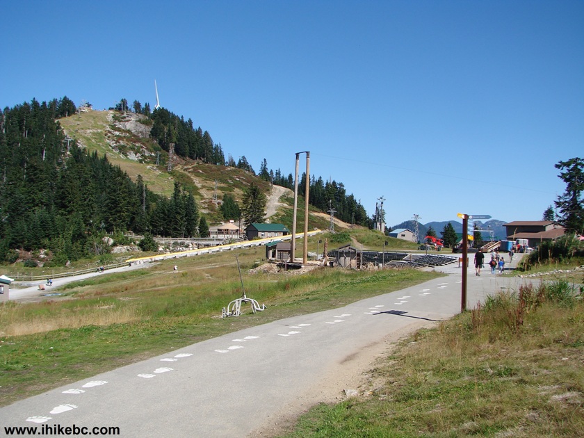 2. Once you get to the top, you still need to walk for just over one kilometer to get to the hiking area. There are no signs pointing in that direction, so follow the painted footsteps to the grizzly bear habitat.