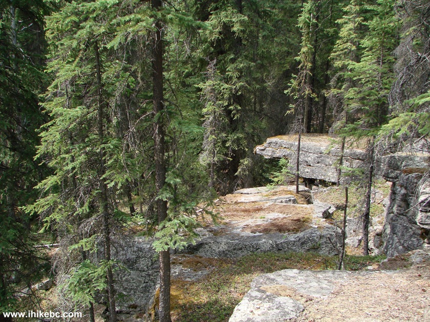 22. While walking on the path to the right, you have an option of taking a shortcut by turning to the left, hopping down some stones, and then observing impressive layered rocks.