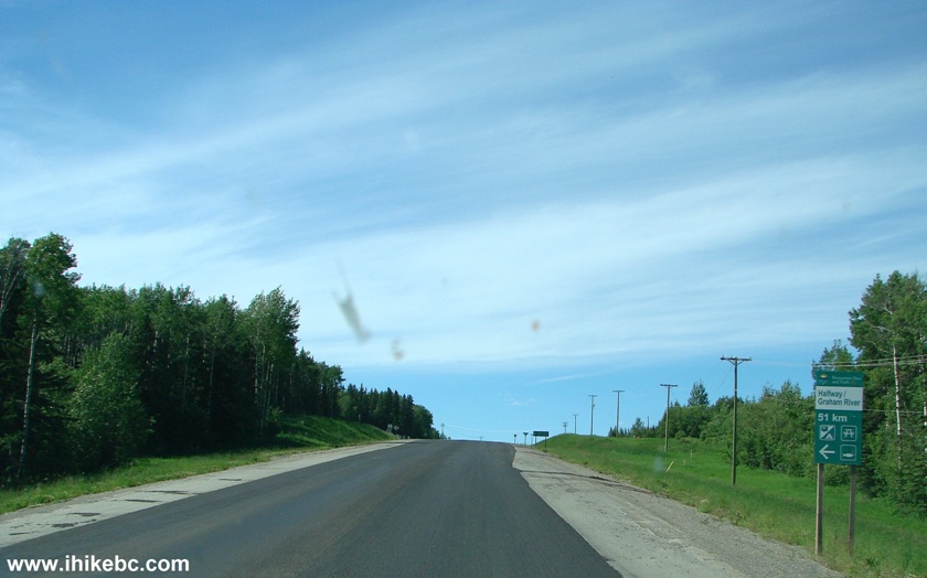 2. Shortly before the town of Wonowon (Mile 101), prepare to turn left onto Upper Halfway Road. The sign would say "Halfway / Graham River". The next sign would say "Halfway River First Nation".