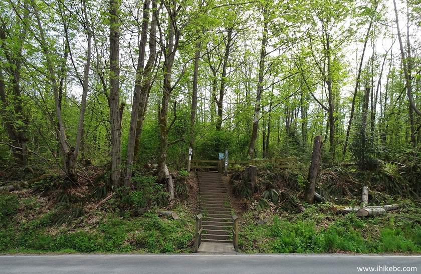 across from the parking lot, is a staircase leading to Admiralty Trail.