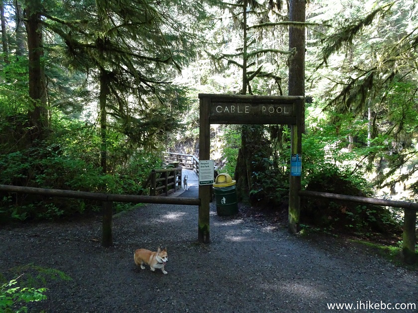 49. Two hundred meters later, to the right is a short staircase to a parking lot, while a bit forward and to the left is a Cable Pool observation area. Coordinates: N 49⁰21.280' W 123⁰06.644'. Elevation: 59 meters.