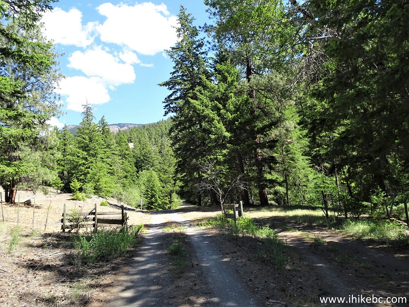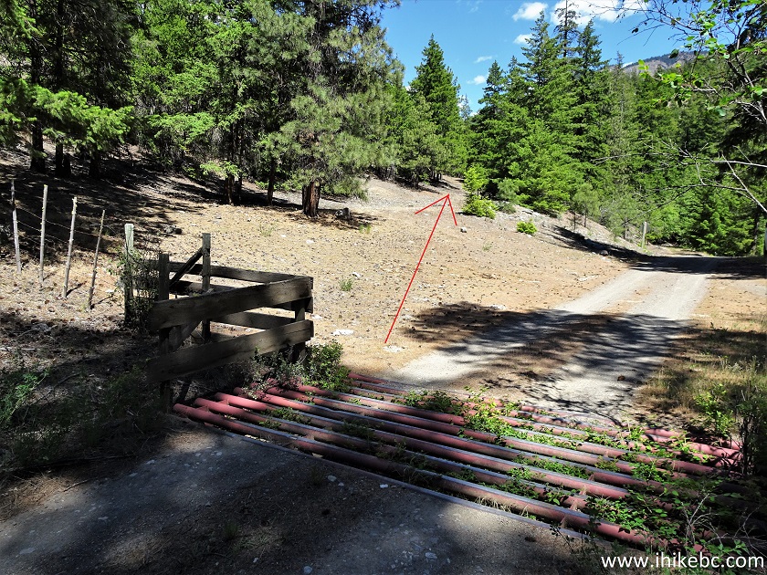 9. It's 300 meters from the cattle guard to the trailhead. Just go between the trees (they are widely spaced), keeping as close to the FSR on your right as you can.