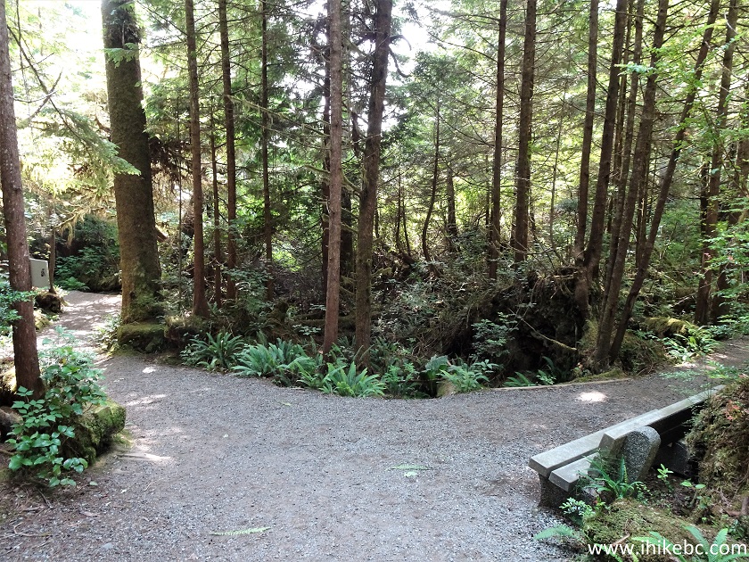 16. We made a right turn, and are now on Wild Pacific Trail, at 340 meters from the Ancient Cedars Loop trailhead.