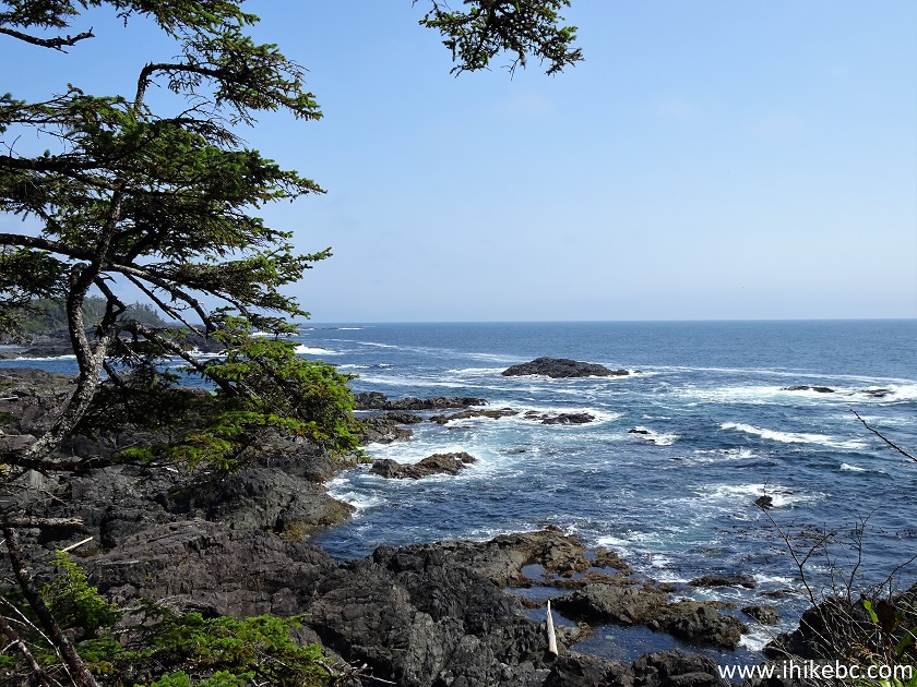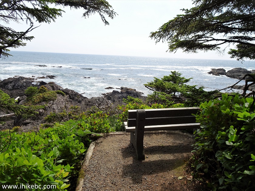 of Ucluelet, Western Vancouver Island. Liked: Fine ocean and coast vistas, an easy trail with lots of shade, no bugs, numerous benches with views.
