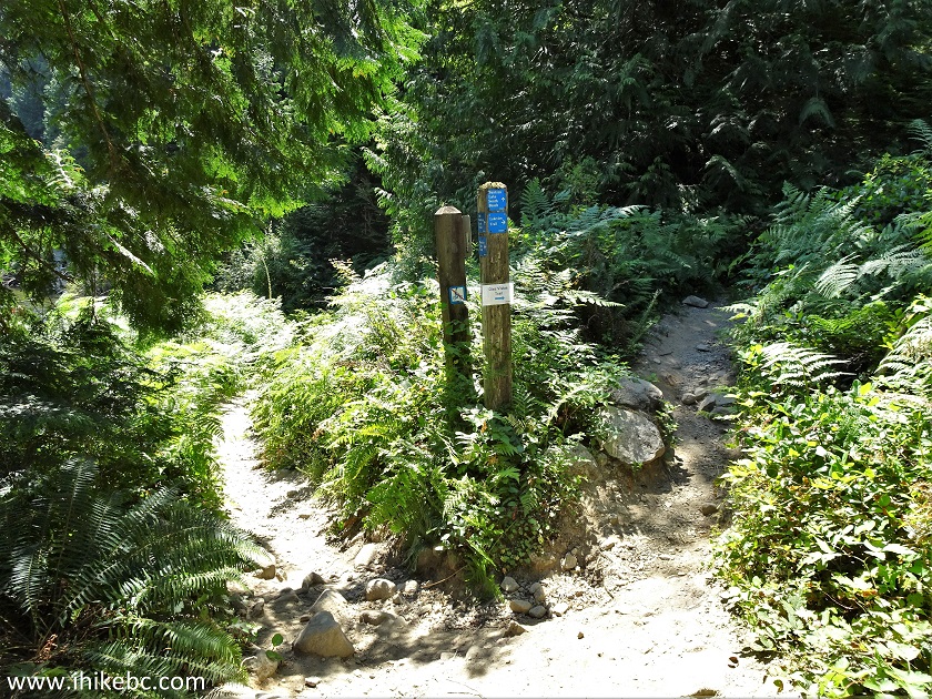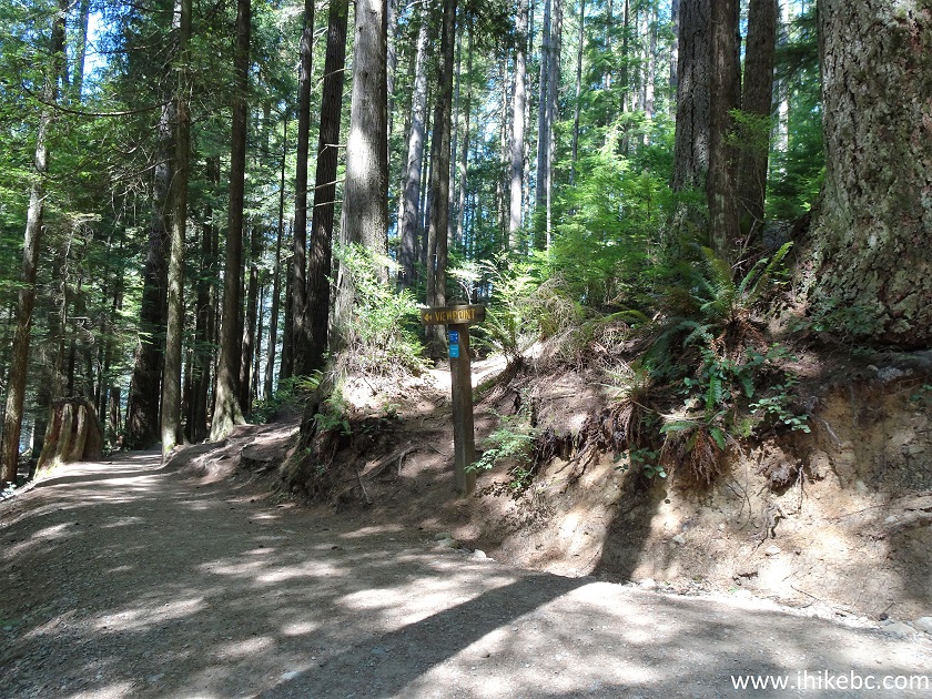 7. At 830 meters, there is a split. Buntzen Lake Trail continues to the right. And, to the left, is a short trail to a lake viewpoint.
