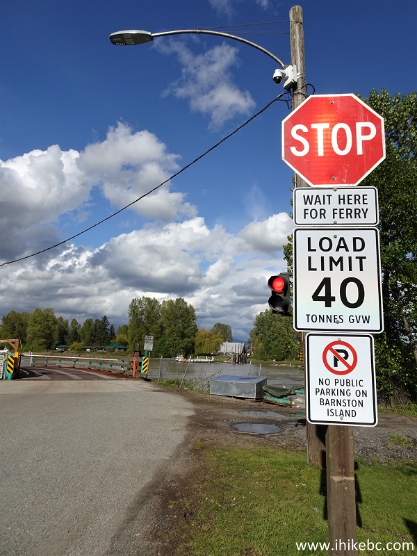 4. Load limit is 40 tons. No public parking is available on Barnston Island. The cameras you see above the stop sign show still pictures on DriveBC. Click on the link to see the line-up at Port Kells Terminal, and then use the map below the camera view to click on other 3 camera views (one more at Port Kells, and two on Barnston Island side).