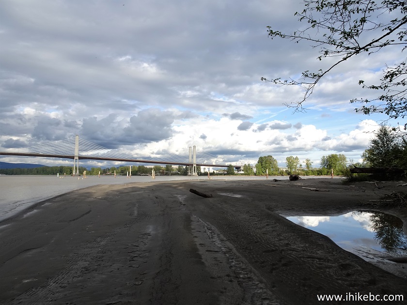 22. And here is a point 4.3 km from the ferry if you turn right upon getting to the island. We are actually looking back after turning around. This is a good spot to get a fine Golden Ears Bridge views with vegetation in the foreground.