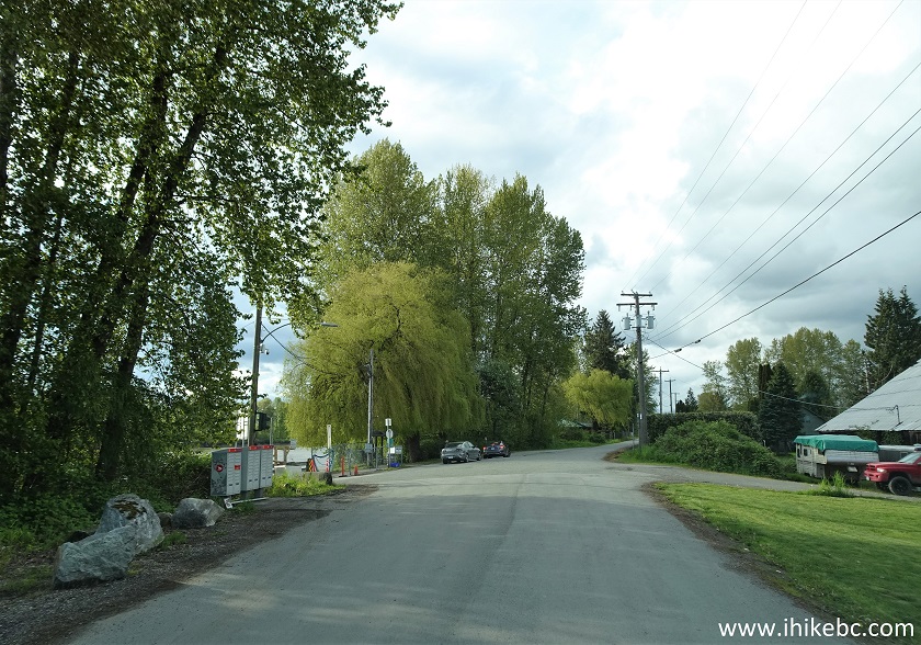 2. We are at the northern end of 104 Avenue in Surrey, approaching Port Kells Terminal of Barnston Island Ferry, with Surrey Bend Regional Park turnoff being several hundred meters behind us. For directions on getting here from Highway 1, check out our Surrey Bend Regional Park trip report. The parking lot seen on the left side of the photo below is free.