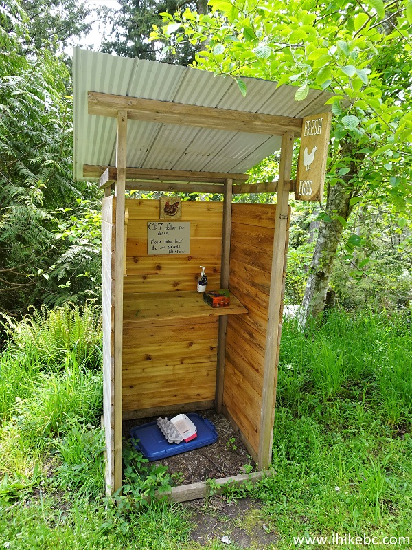 23. On Cottage Way, which is a road leading to Bodega Ridge trailhead, about 700 meter from Porlier Pass Road there is a self-serve fresh egg dispensary. Leave $7 in the box, and take the eggs. Very convenient!