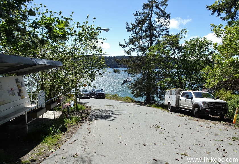 25. To get to Montague Harbour Marina, follow signs to Montague Harbour Marine Provincial Park, and go straight just past the sign which shows 1 km to the park. The road to the park will turn right - you can see that far ahead.