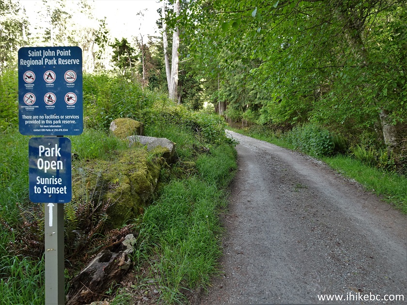 34. Just 140 meters past Horton Bay Dock is the entrance to Saint John Point Regional Park Reserve - on the right side. The main road becomes private past the park entrance.