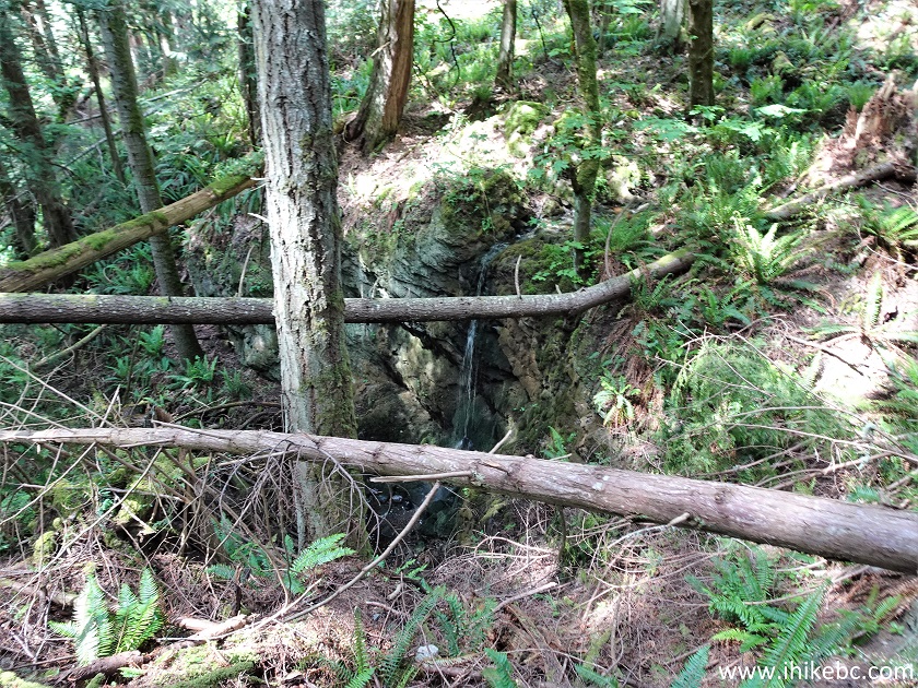 40. And now we are on Spalding Road at the trailhead to Enchanted Forest waterfall and viewpoint. Coordinates: N 48°44.900’ W 123°13.458’ Elevation: 70 meters. The forest itself is much larger than the part we have explored.