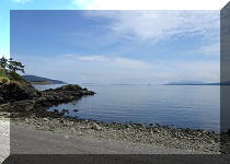 East of Salt Spring Island. Liked: Views from ocean access points, Enchanted Forest waterfall, paintings outside of the Community Hall, a fairly large shopping mall for such a small island, meeting friendly domestic hogs. Of Note: A small island with limited services, the roads have no shoulders, and are often narrow and winding - watch for pedestrians, cyclists, and deer. Canal Road past Mount Norman trailhead access road is restricted to 5,000 kg due to a sliding road surface.Vancouver Island, Victoria & Gulf Islands Backroad Mapbook (9th edition) Pender Island Coordinates: Page 12 (Saturna Island) B3-B4 and C3-C4. Related Websites: Wiki - Pender Island. Pender Island is one of British Columbia's Southern Gulf islands. A ferry from Swartz Bay or Tsawassen goes to Pender Island. Also, inter-island ferries connect several Southern Gulf islands among themselves. Thus, today we sailed from Galiano Island via Mayne Island to Pender Island, where we drove around for a few hours and also hiked Mount Norman Trail. This trip report covers interesting sights we found on Pender Island, including views from several shore access points, which are so fine on Galiano Island. The views on Pender were not as impressive, but were quite good, nonetheless. Mount Norman Trail Hike is covered in the next trip report.