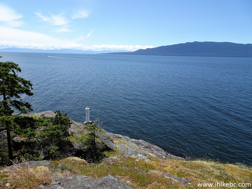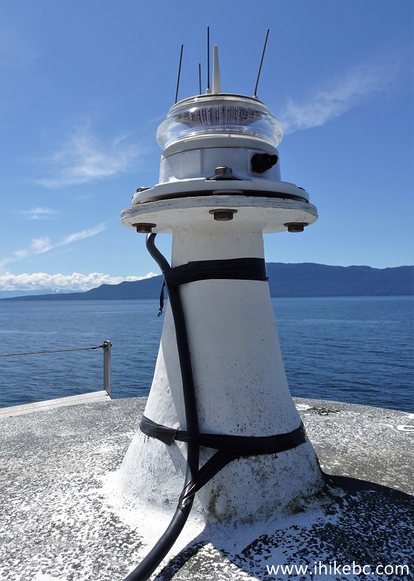 Liked: Several fine shoreline views, a small automated lighthouse, shade in the forest, no bugs, a fine view from a bridge en route to the park. Of Note: The second half of the trail has no tree cover, the park is popular, unbarricaded drop-offs at some viewpoints, uneven ground, rocks and roots, hiking poles and boots are recommended. Vancouver, Coast & Mountains Backroad Mapbook (5th edition) Park Coordinates: Page 9 (Sechelt) A2. Related Website: Francis Point Provincial Park - BC Parks Official Website. Francis Point Provincial Park features a short easy trail (less than 1.5 km one way), which goes along the shore of Francis Bay, and has fine views of the shoreline. We relied on our automotive GPS to get to the park, and it directed us to the end of Francis Peninsula Road, where a sign stated that the park entrance is located off Merrill Road. Interestingly enough, there are no signs at all directing you to the park, and certainly no sign at the intersection of Francis Peninsula and Merrill Roads. But now we know. The hike is short and easy, the views are good, and a small climbable lighthouse makes it and even more interesting outing. All trail distances are based on a GPS odometer and are approximate. 1. Here is a Google Maps location of Francis Point Provincial Park.