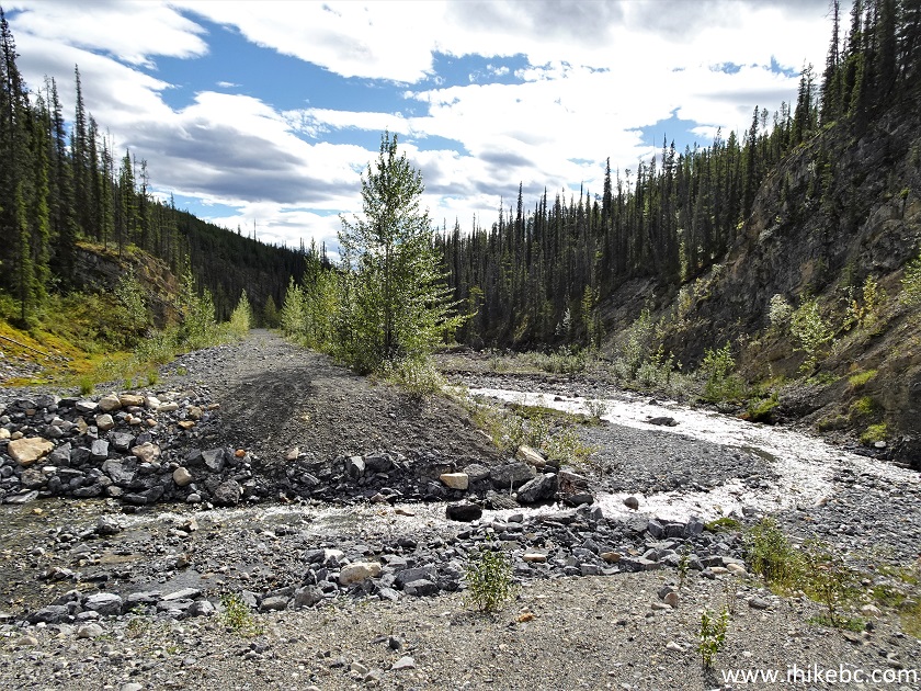37. Crossing Peterson Creek. Coordinates: N 58°49.758’ W 125°43.076’. Elevation: 1,095 meters.