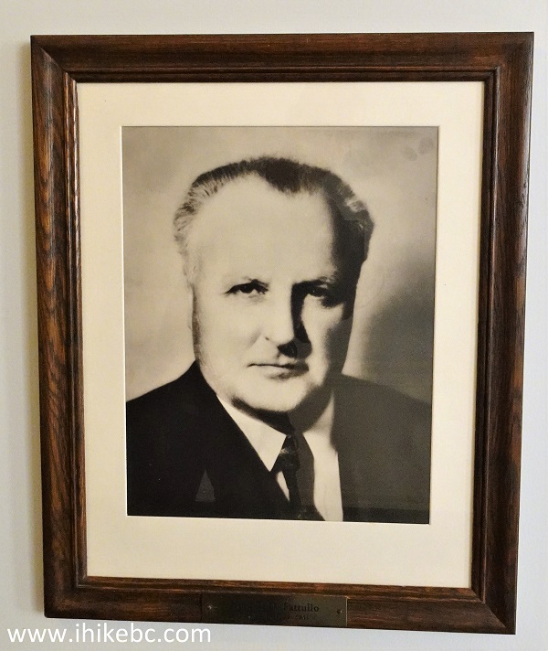 More ihikebc videos are on our YouTube Channel. 41. Let's go back to the photos of BC Premiers on the walls. There have been quite a few of them, but those of us from Vancouver or who know Vancouver rather well, would certainly recognize many of these names. Starting with T.D. Patullo (BC Premier 1933-1941) - hello, Patullo Bridge!
