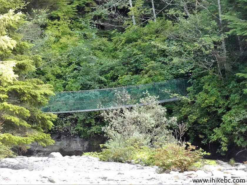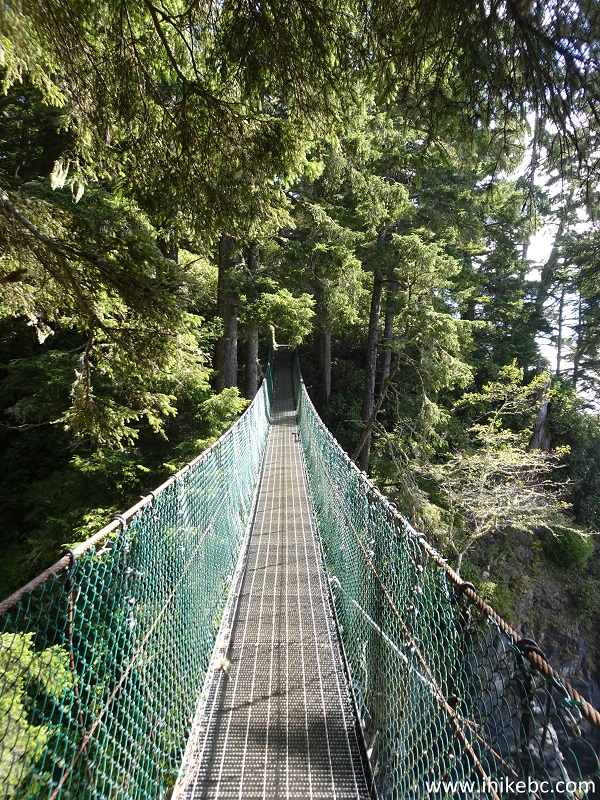 150. The main attraction of the Parkinson Creek - Sombrio Beach stretch of Juan De Fuca Trail comes right at the 32 km mark (just 15 meters east of it - towards km 31). It is Minute Creek suspension bridge.