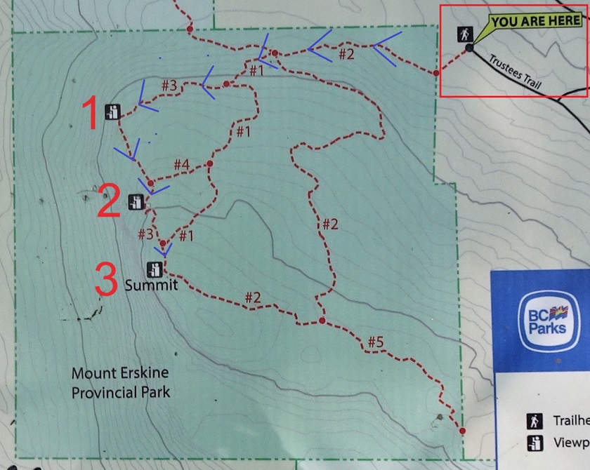 meters after that to the summit (viewpoint #3). 10. Mount Erskine hike begins. At