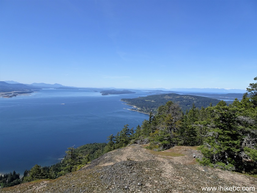 Liked: A fairly short and uncomplicated trail to excellent views of Salt Spring Island, Vancouver Island, and a passage between them. Views of remote islands. Shade in the forest. No bugs.