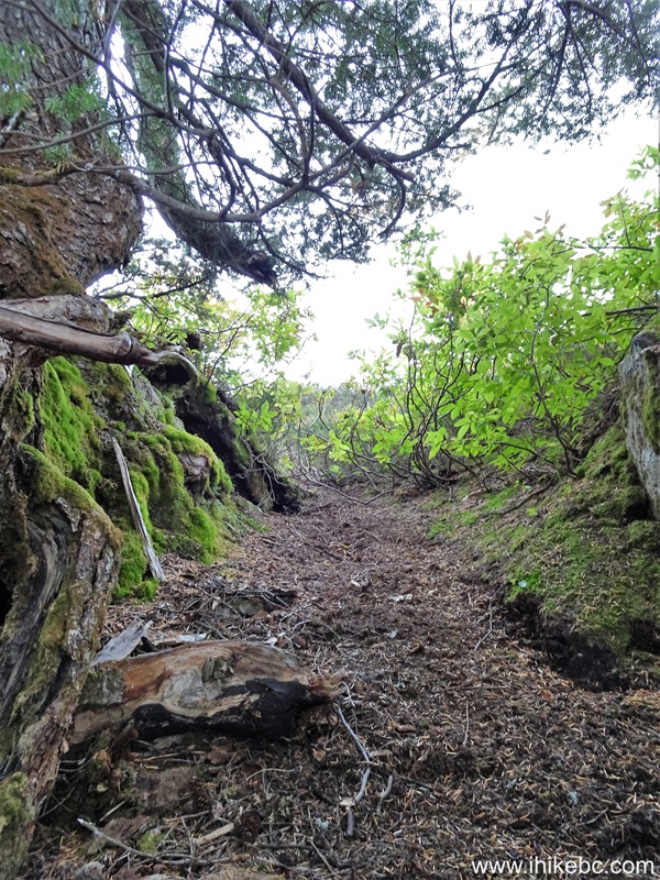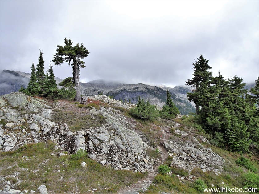 43. Right after the tree, at 1.60 km, there is a descent. Coordinates: N 49⁰38.711' W 122⁰51.124'. Elevation: 1,720 meters.