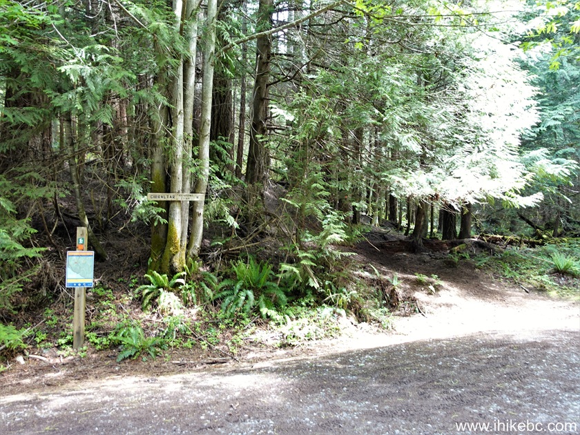 *All trail distances are based on a GPS odometer and are approximate. 1. Here is a Google Maps location of Trinket Trail trailhead. This is actually Sunshine Coast Trail to Gibraltar Viewpoint (going Right), and to Toquenachfalls Bridge (going Left). Trinket Trail does branch off Sunshine Coast Trail, runs parallel, and then joins back in. It is so called because people used to leave trinkets along the trail, but now there is, apparently, a "no plastics" policy in effect, so few trinkets are still there. We haven't visited Trinkets Trail, but do indicate in the trip report where it begins and ends off Sunshine Coast Trail to Gibraltar Viewpoint.